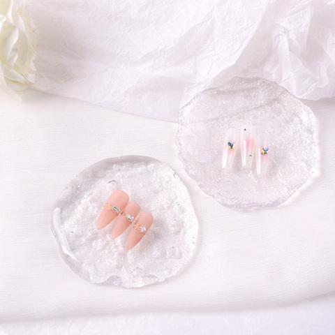 2022 TSZS日本の透明ガラスDIYパレットネイルシューティング小道具ディスプレイボードクリスタルネイルジェムプレート